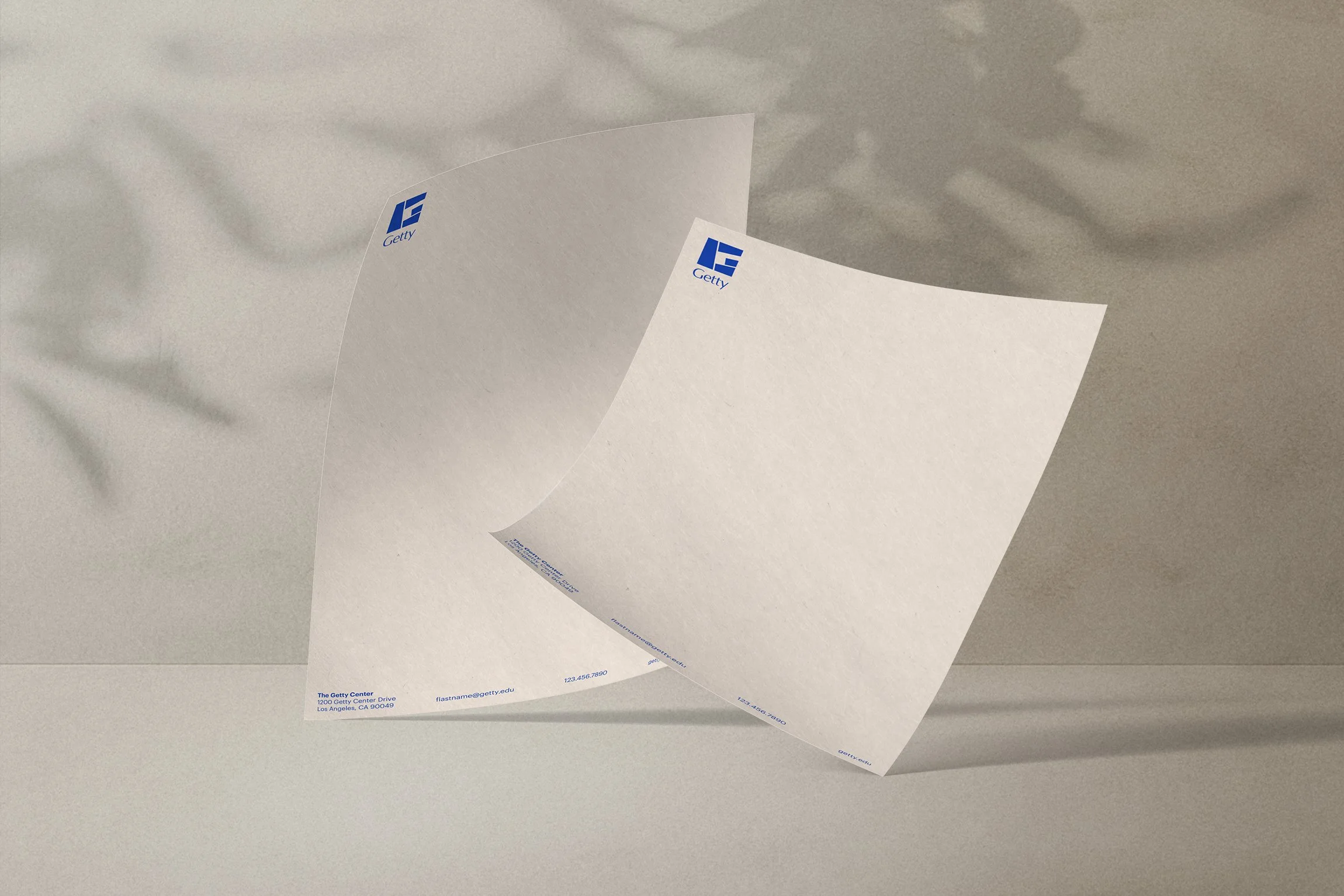I designed a new "G,” a visual addition to the most recent Getty logo. The square block references Getty Center's travertine architecture; the four mosaic-like fragments pull from Getty Villa's visual language and represent each of Getty's core programs. The result is a flexible identity element built to flex across contexts and scale.